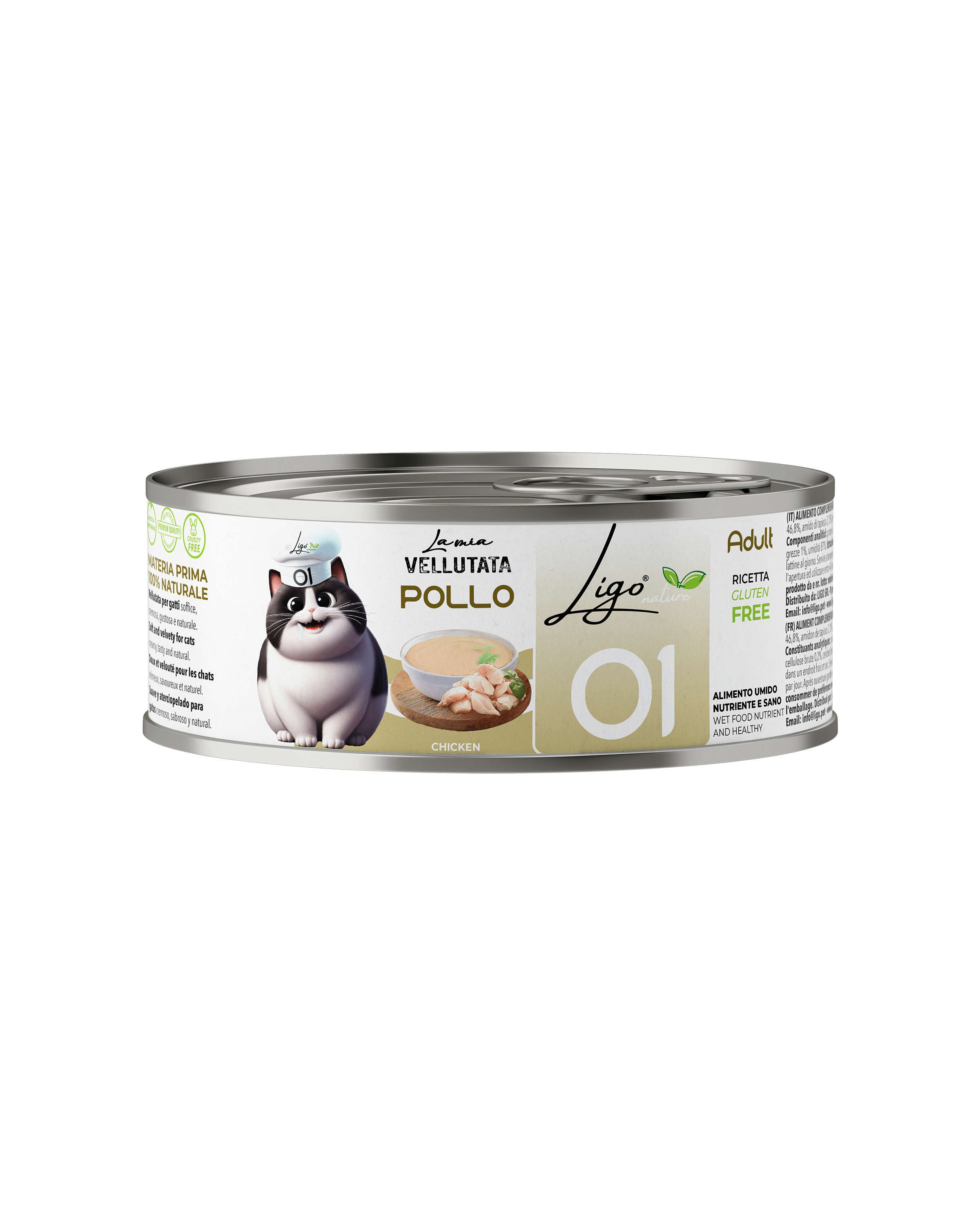 Una vellutata cremosa al pollo, pensata per offrire gusto e digeribilità anche ai gatti più esigenti. La consistenza morbida è ideale per stimolare l’appetito e facilitare l’assunzione, soprattutto nei soggetti più delicati o anziani. Preparata con ingredienti selezionati, senza aromi artificiali né coloranti.