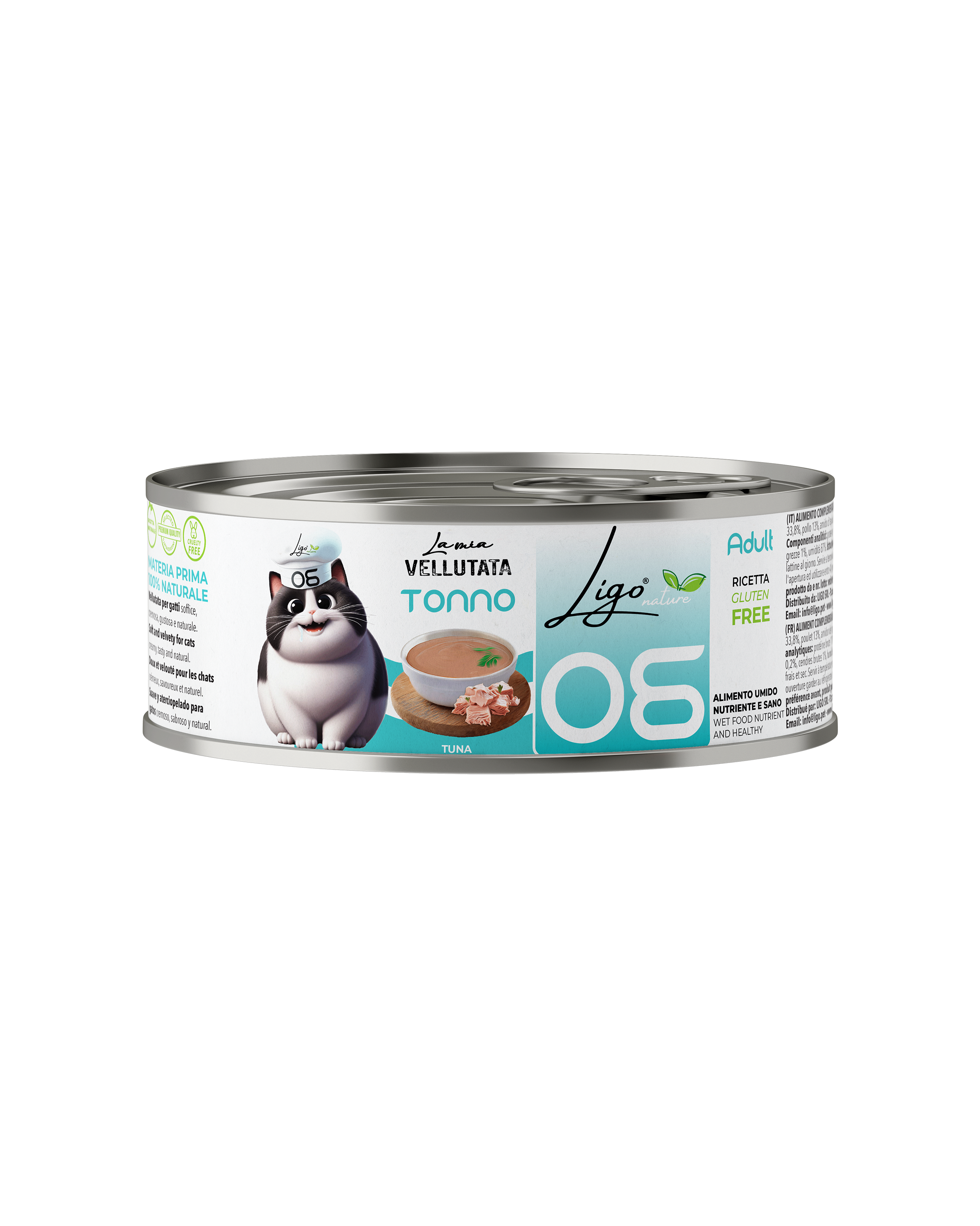 Lattina n.30 – Vellutata Tonno Questa vellutata è preparata con tonno di alta qualità, cotto in un brodo leggero e naturale. La consistenza liscia e omogenea è ideale per gatti adulti che prediligono una consistenza più morbida e delicata.