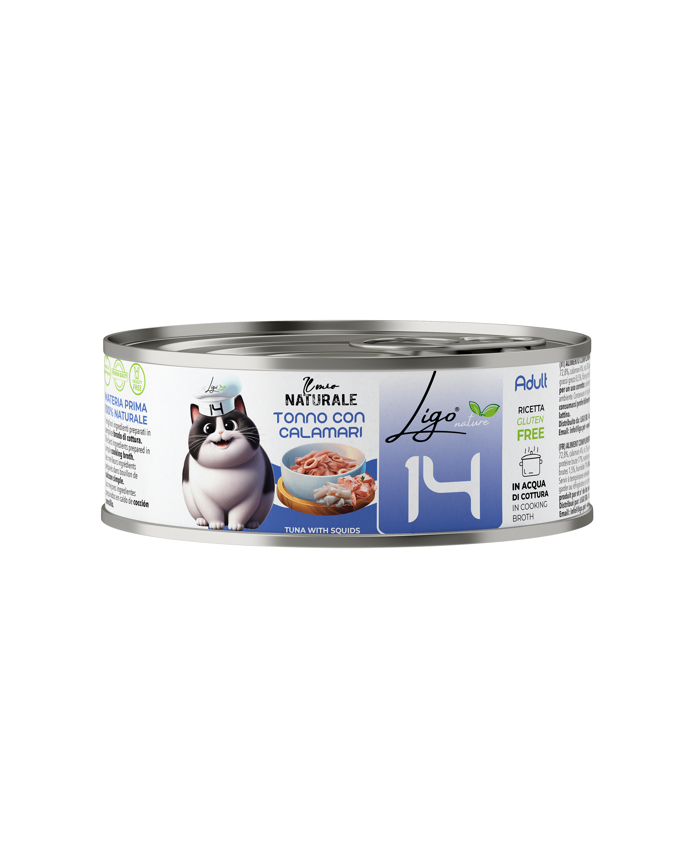 Una proposta dal sapore marino, che combina il tonno con i calamari per un pasto diverso dal solito. Cotta in acqua di cottura, è perfetta per alternare l’alimentazione del gatto con una ricetta gustosa e naturale.