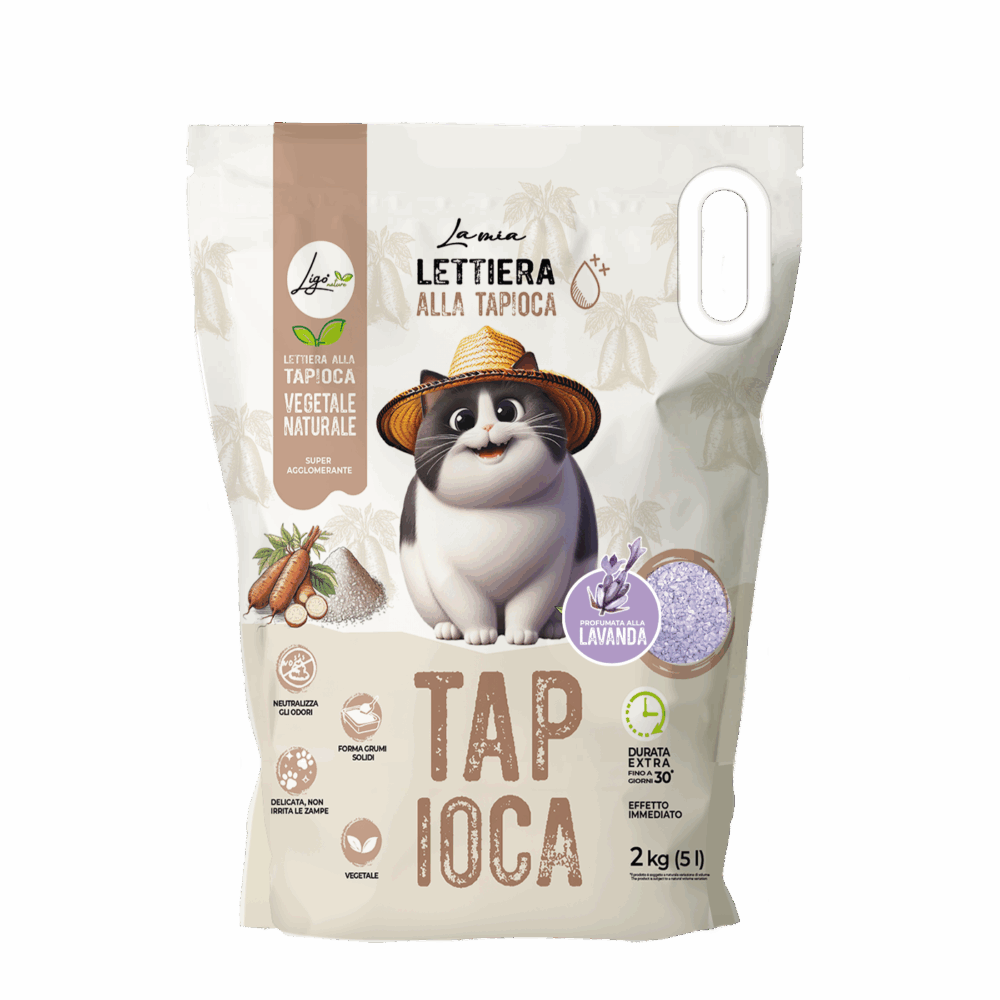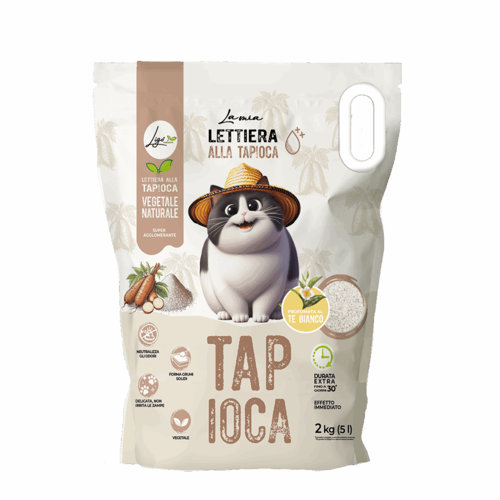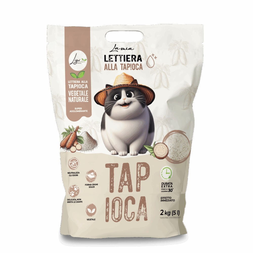 - Tapioca Litter: natural white tapioca, ultra-lightweight and highly absorbent