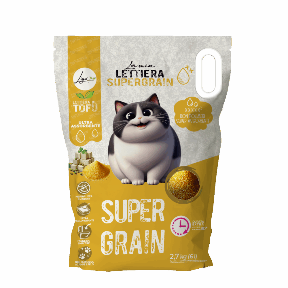 - Supergrain Litter: innovative formula based on natural grains with rapid clumping and low dust