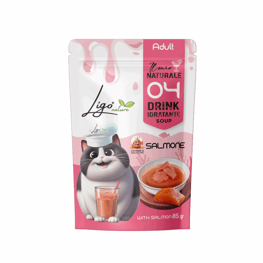 Soup Drink by Ligo Nature are liquid soups for cats from the “My Natural” line, designed to contribute to your cat’s daily hydration in a tasty and natural way. Available in 10 recipes — including tuna, salmon, duck, beef, chicken with liver and vegetables, and the exclusive goat milk variant — Soup Drinks combine nutrition and hydration in a practical and appetising format.
