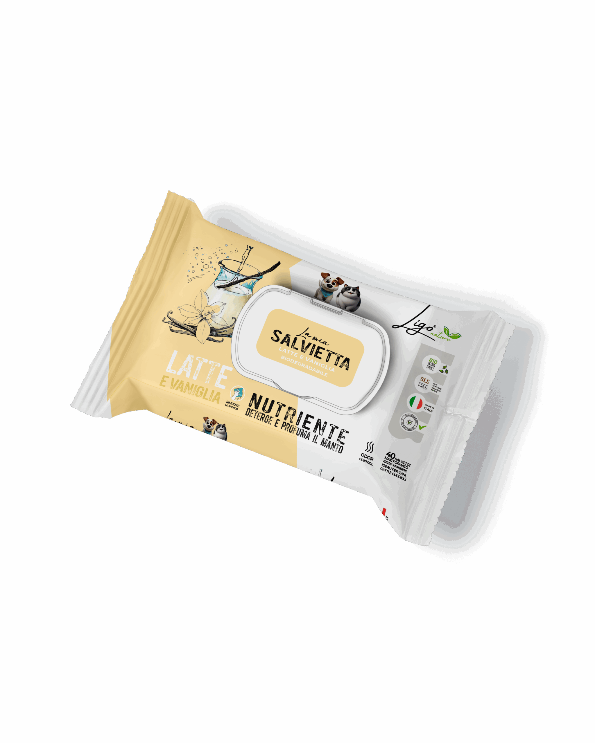 - Salviettine per l'igiene: ideali per la cura quotidiana di occhi, orecchie, zampe e parti intime, disponibili in maxi confezioni e versioni pocket con fragranze come muschio bianco, talco e latte di mandorla.